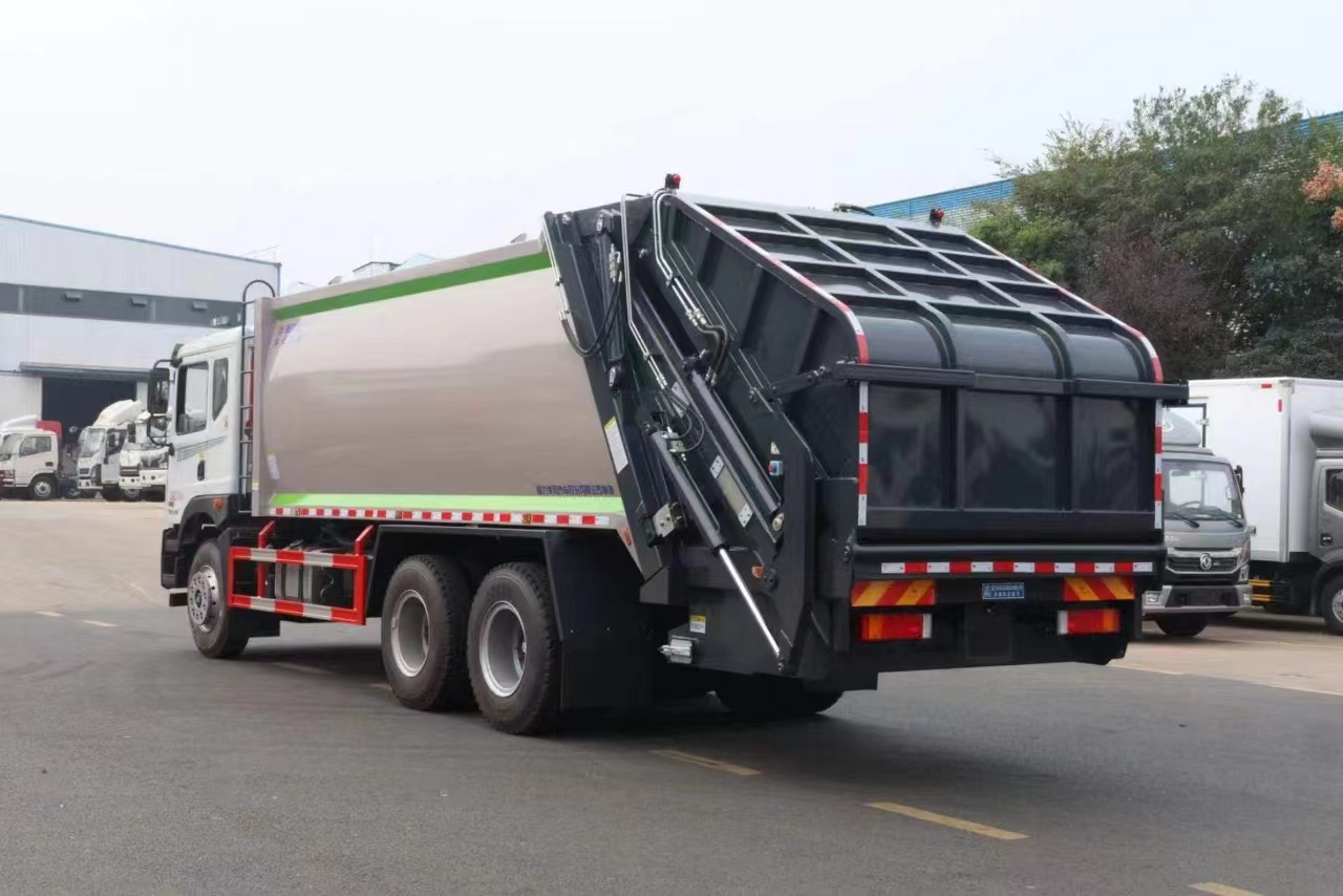 | 上裝配置 | 新款弧形箱體,箱體容積加大約22立方,箱體為優(yōu)質(zhì)高強度Q345錳鋼制作,底箱及填充器采用加厚鋼板,耐腐蝕使用壽命長,三層油漆噴涂處理/電泳工藝。裝載循環(huán)以及垃圾排出時間快,上裝部分具備雙向壓縮和蠕動壓縮功能帶。新款結(jié)構(gòu)加大填充器,手電一體操作模式,帶駕駛室操作,帶駕駛室一鍵卸料功能,尾部裝置可以選裝垃圾翻轉(zhuǎn)斗,掛桶翻轉(zhuǎn)板或者大落地斗。PLC/CAN總線控制方式,光電開關(guān)加延時雙系統(tǒng)控制,降低故障率,方便維修。帶夜間照明裝置,帶污水箱,標配選用:定制油缸(質(zhì)保兩年),中梅多路閥,液壓油泵(雙泵雙閥),帶液壓散熱器,嘉善取力器。 | ||