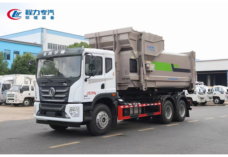 程力專汽東風華神后雙橋勾臂垃圾車+移動壓縮箱