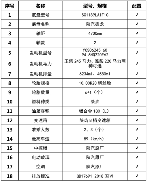 ??????湖北程力汽車:程力CL5183GLQ6BLS型陜汽L3000智能瀝青灑布車產(chǎn)品型號(hào)及參數(shù)配置,程力CL5183GLQ6BLS型陜汽L3000智能瀝青灑布車高清圖片,程力汽車系列程力CL5183GLQ6BLS型陜汽L3000智能瀝青灑布車最新報(bào)價(jià)請(qǐng)撥打客服熱線。車輛主要配置 產(chǎn)品商標(biāo) 程力牌 公告批次 389(擴(kuò)展) 產(chǎn)品名稱 瀝青灑布車 產(chǎn)品型號(hào) CL5183GLQ6BLS 總質(zhì)量(Kg) 18000 罐體容積(m3) 9.5 額定載質(zhì)量(Kg) 8220,8155 外形尺寸(mm) 8560 × 2500,2550 × 3350 整備質(zhì)量...