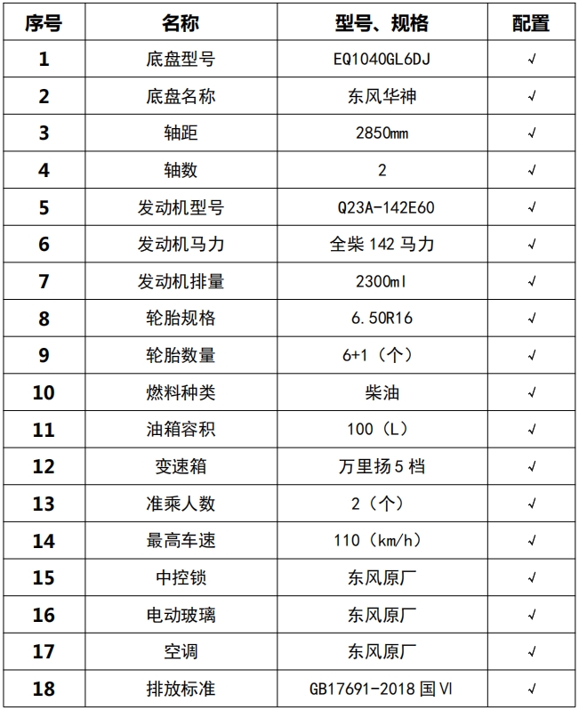| 底盤技術(shù)參數(shù) | |||