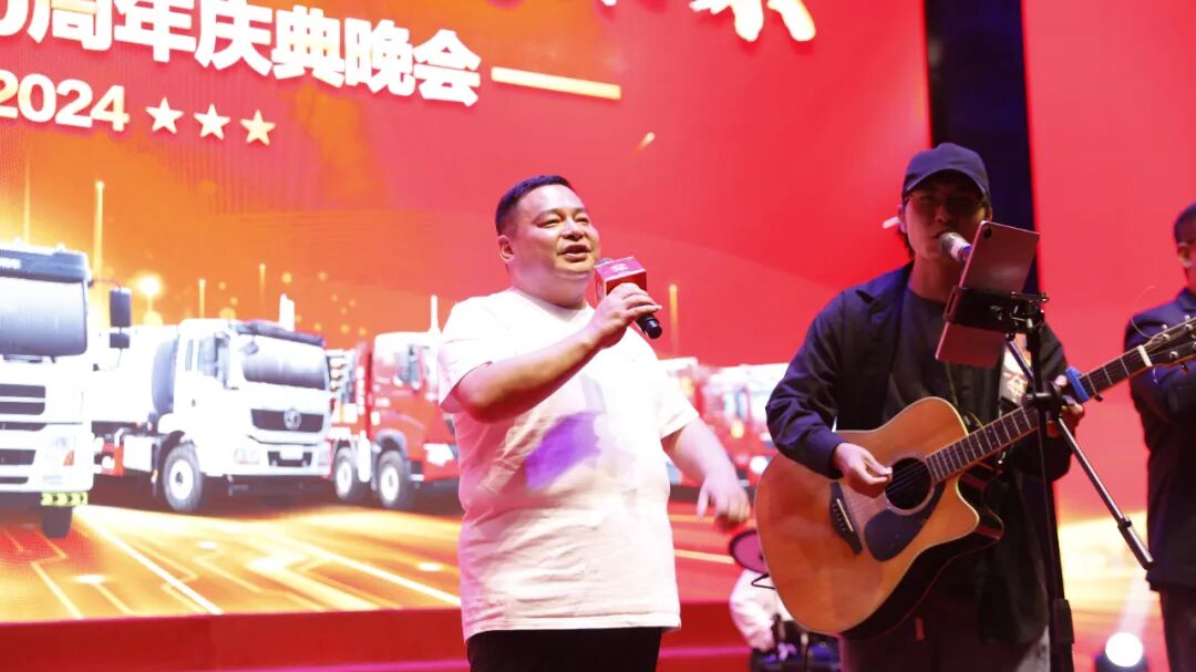 程阿羅董事長(zhǎng)講述創(chuàng)業(yè)故事并現(xiàn)場(chǎng)演唱歌曲,鼓勵(lì)年輕程力家人戒驕戒躁,奮力拼搏砥礪前行。