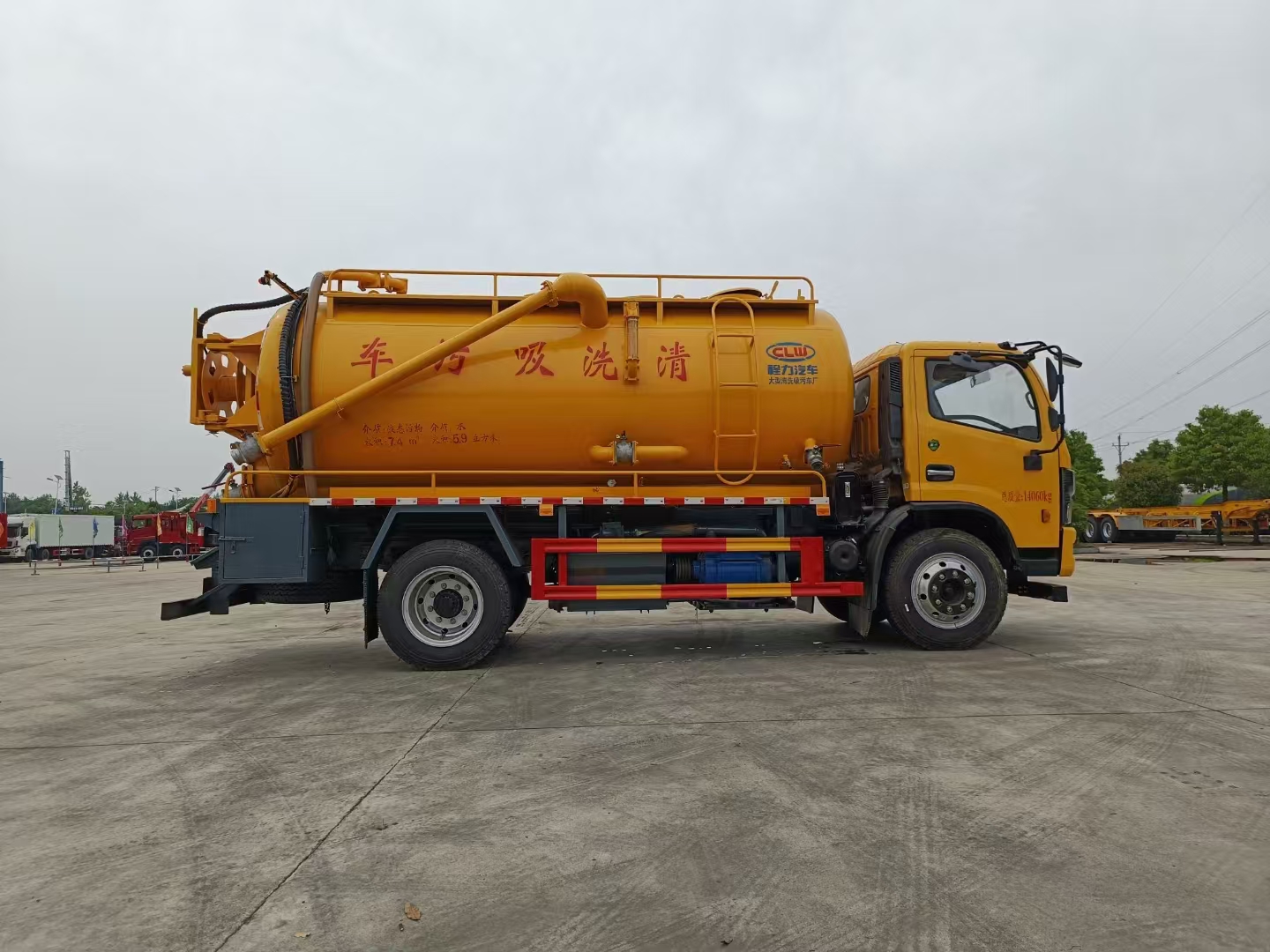 | 污水罐 | SK-12水循環(huán)泵,水循環(huán)泵水箱為碳鋼材質(zhì),頂部防溢閥位置盡量最低,尾部開大蓋,100球閥直通罐頂吸污,吸污壓力表裝在水箱附近,罐體尾部兩側(cè)工具箱,手動油門,1根8米吸污管帶陰陽端接口,10個組合槍頭,其他廠內(nèi)標(biāo)配。 | ||
